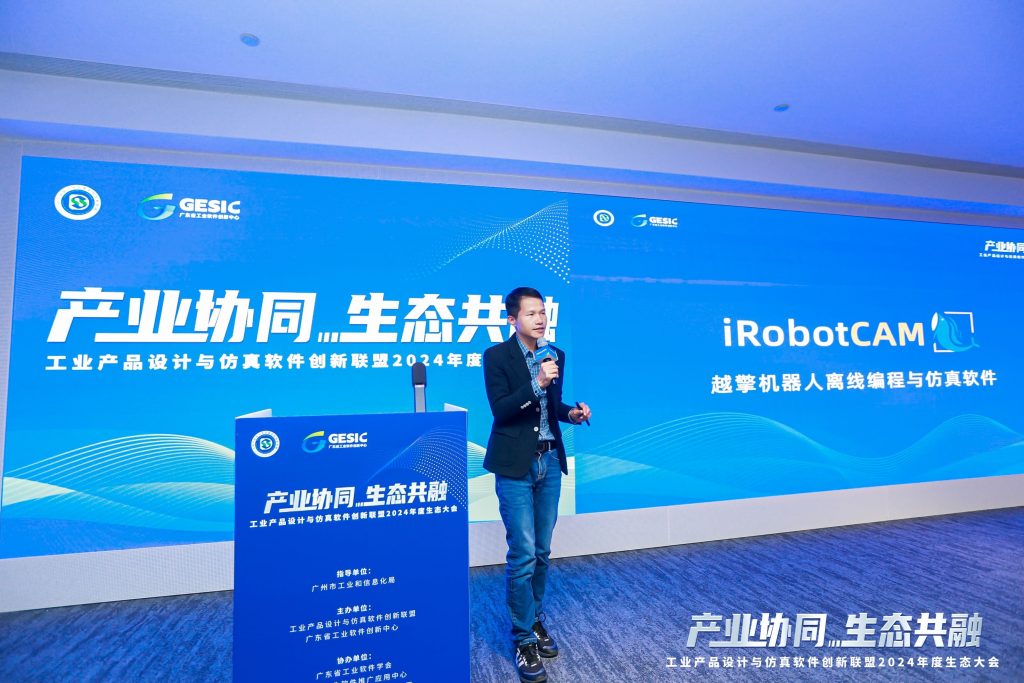作為工業產品設計與仿真軟件創新聯盟成員,越擎科技聯合創始人林廣創先生展示了機器人離線編程軟件iRobotCAM近四年的研發成果。