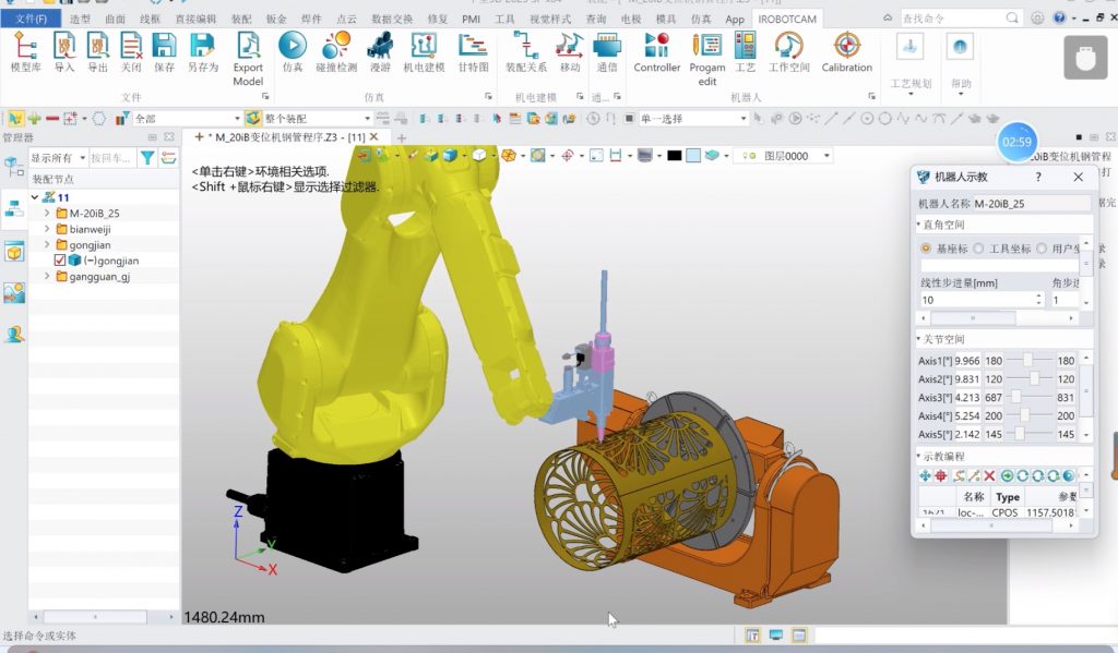 5. 利用iRobotCAM的機器人虛擬調試能力,可以實現機器人激光場景的編程與虛擬仿真,高效的查看機器人工藝的應用效果