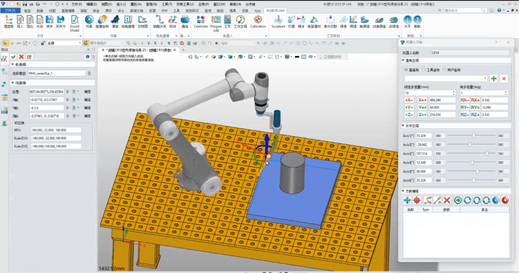 Avec la flexibilité croissante des applications robotiques, et notamment le haut degré de liberté et la haute précision des robots collaboratifs, des industries comme l’aéronautique, l’automobile et l’électronique ont adopté un grand nombre de robots collaboratifs pour alléger le travail manuel répétitif et améliorer considérablement l’efficacité de la production. La programmation et la simulation de divers scénarios collaboratifs robotisés constituent la base des applications robotiques collaboratives. Cet article présente iRobotCAM, un logiciel de programmation hors ligne de robots domestiques développé à partir d’une plateforme de modélisation CAO 3D. Il prend l’exemple du robot collaboratif Debot pour expliquer comment utiliser rapidement les robots collaboratifs Debot pour réaliser la programmation et la simulation virtuelle de robots de soudage.