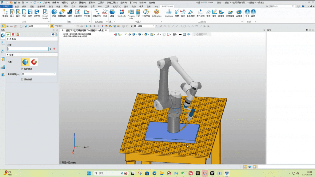 6. Pour les scénarios d’application robotique, iRobotCAM peut être utilisé pour simuler la scène de soudage globale du robot et visualiser intuitivement le processus de soudage.
